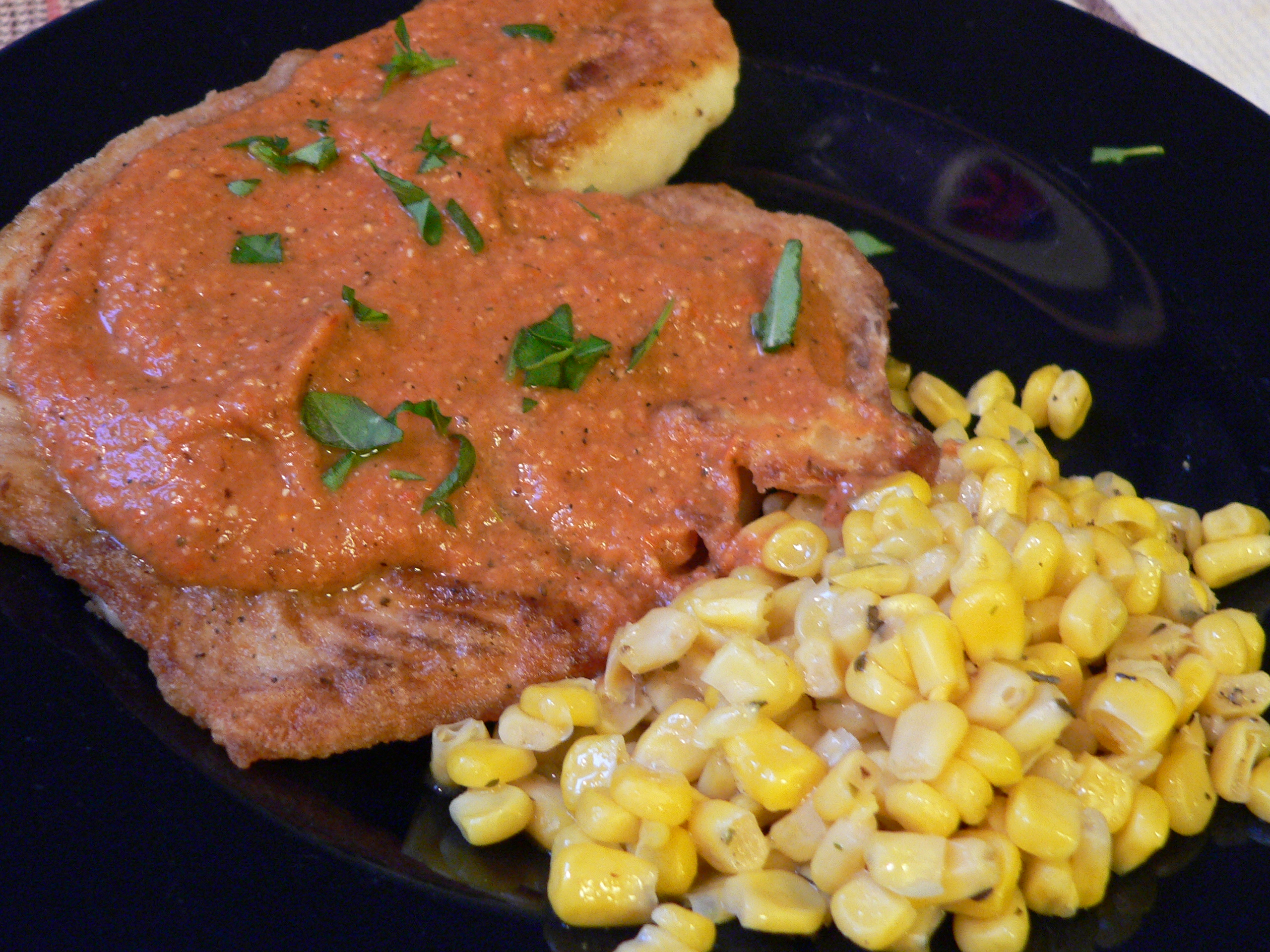 Because the Tilapia Fillets just looked so good, Jon picked some up and came home to start cooking. And because we have more tomatoes from the garden than we know what to do with, he whipped up some tomato sauce to go with them.