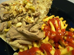 Italian beef is a bit more upscale because it is prepared with “real” meat as compared to the hot dog, but you still can’t find one just right here in town. I’d be happy to be proven wrong. A true Italian beef is not a Beef Au Jus, which you can find at many local establishments. For Italian beef, you douse the meat in a ton of seasoning and cook the roast slowly- sometimes all day, and then slice it up real thin with a meat slicer. When you are ready to serve it, you heat it up in the leftover juices and layer it on top of dense, long fresh italian roll. Jon and I like to drench our sandwich with some of the extra juice and top it off with giardiniera or Italian sweet peppers. It is to die for. If you’ve never had “real” Italian beef, I urge you to stop by Portillos or Buona Beef the next time you are in Chicago. You won’ t be disappointed.