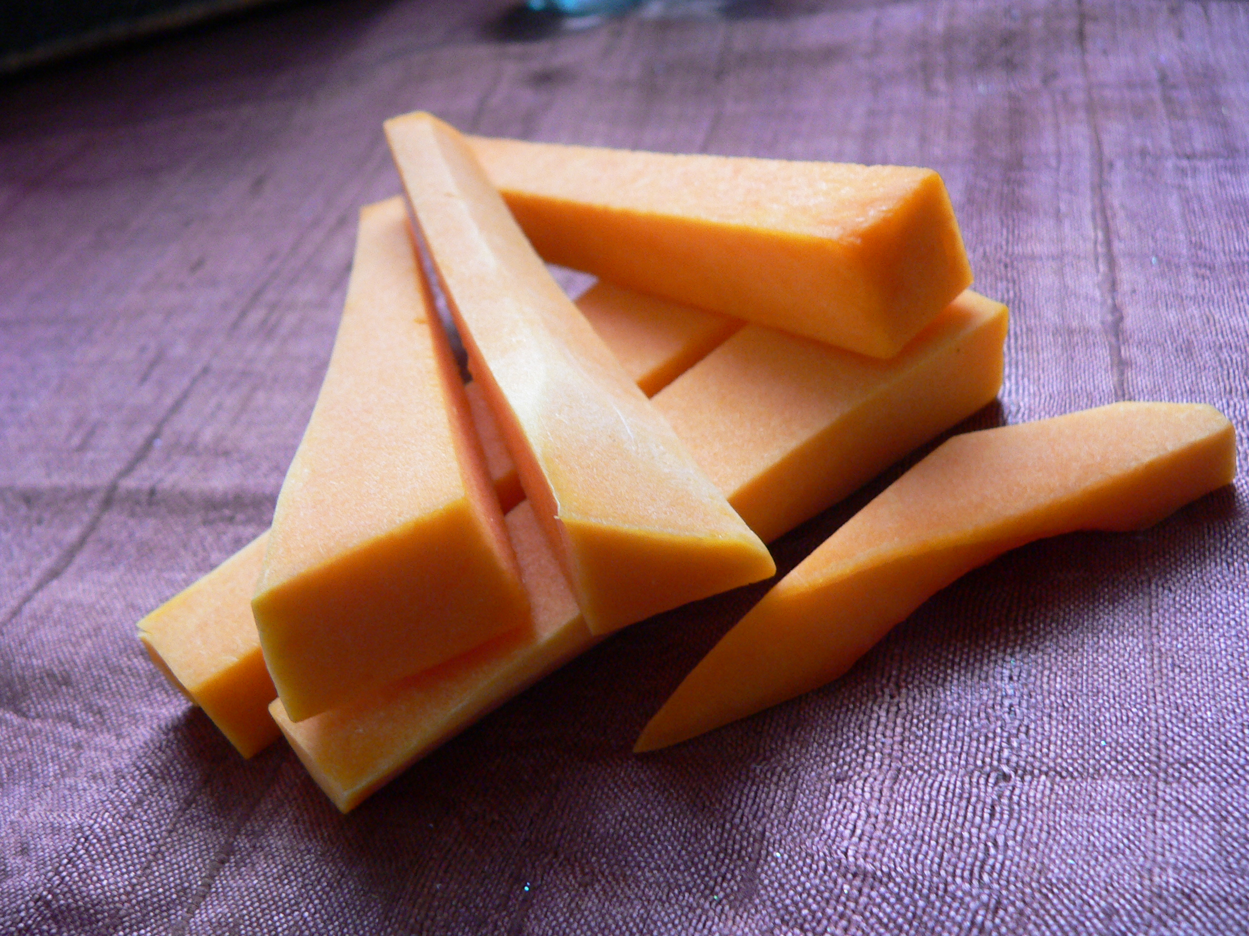 We had some leftover butternut squash from earlier this week, so we sliced it up “carrot style” and kept them in a baggie in the fridge. We brought it out today and decided to let the dogs have it. They loved it. They couldn’t get enough of it. Who knew?