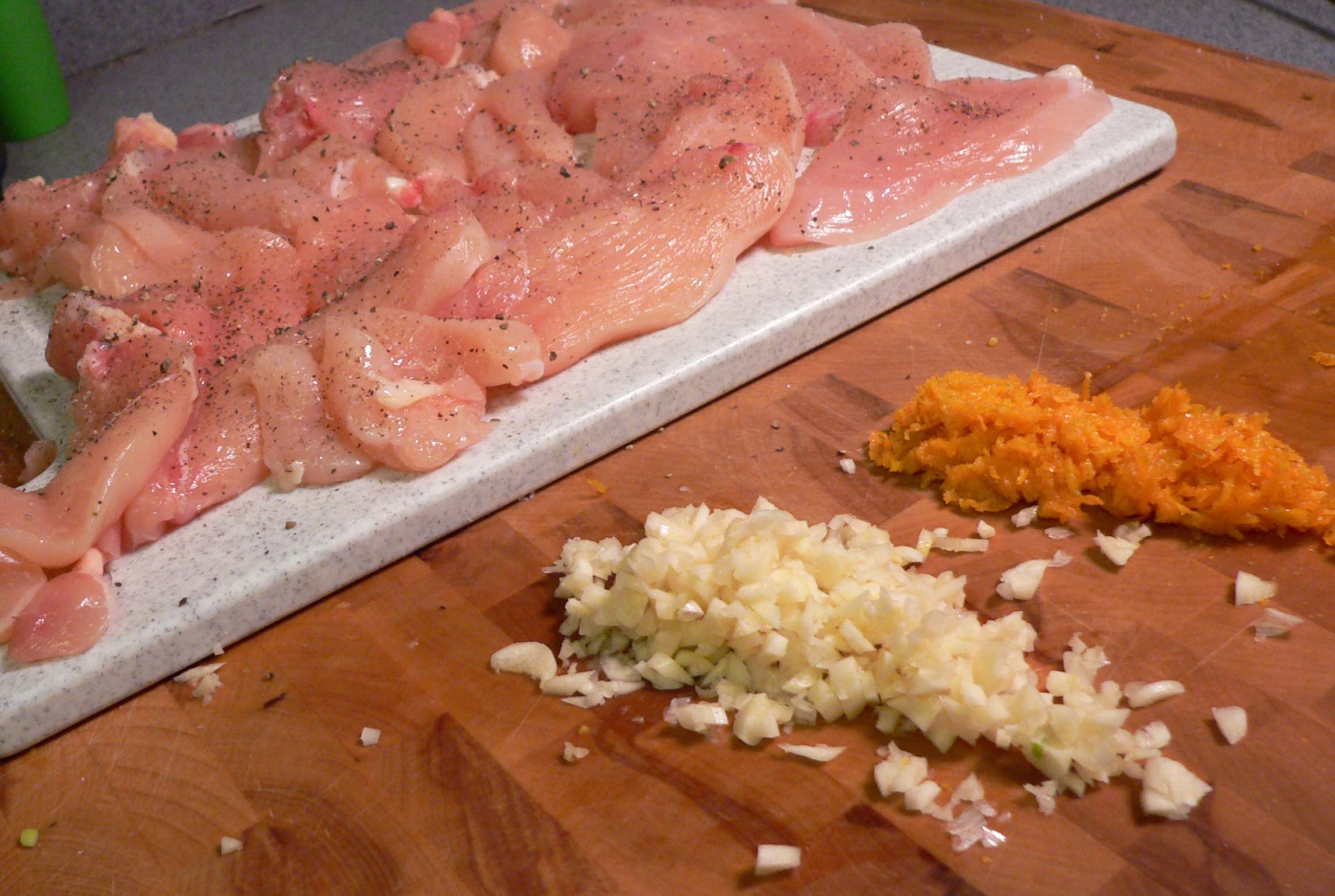 - 1 pound skinless boneless chicken thighs, cut into 1/2-inch-wide strips