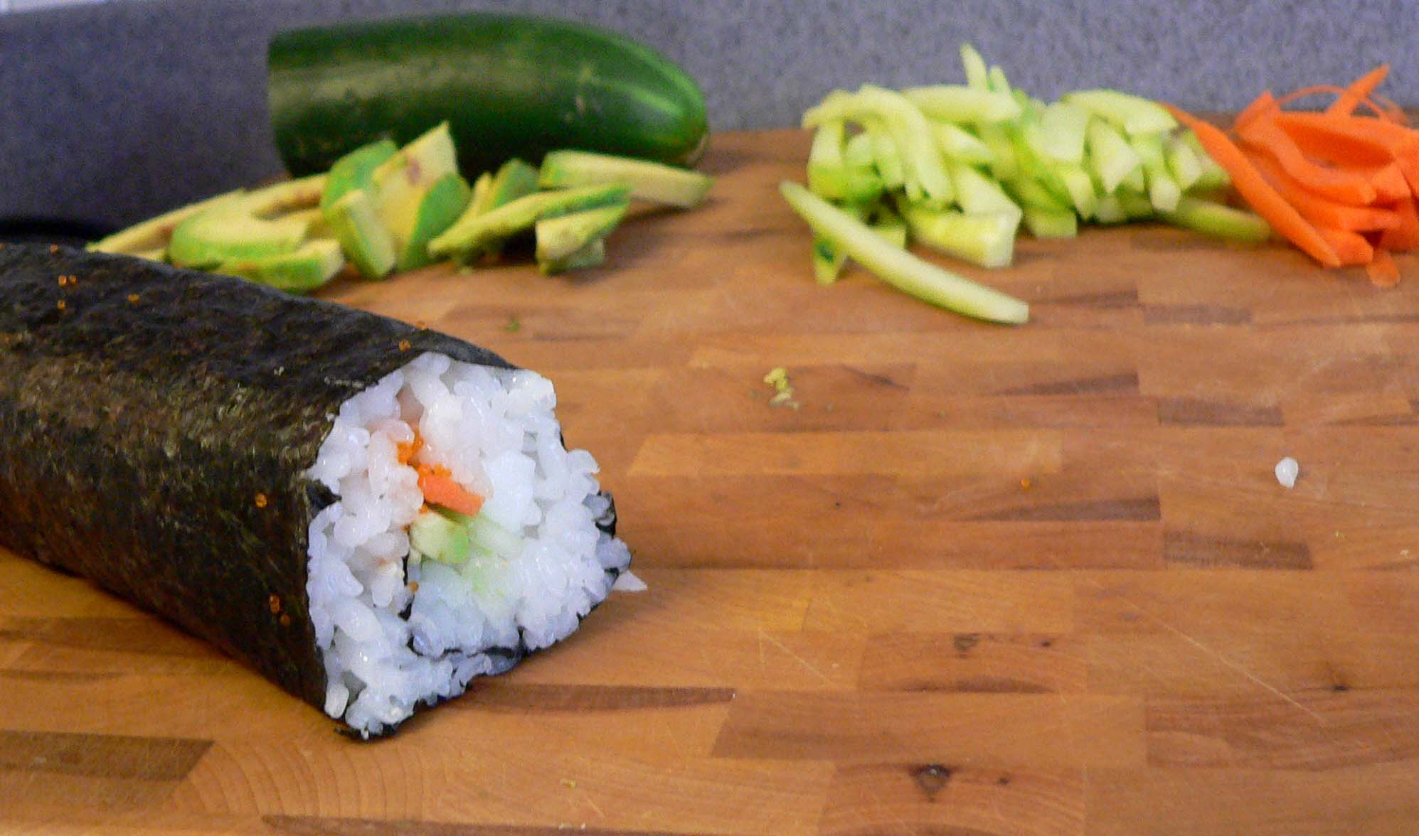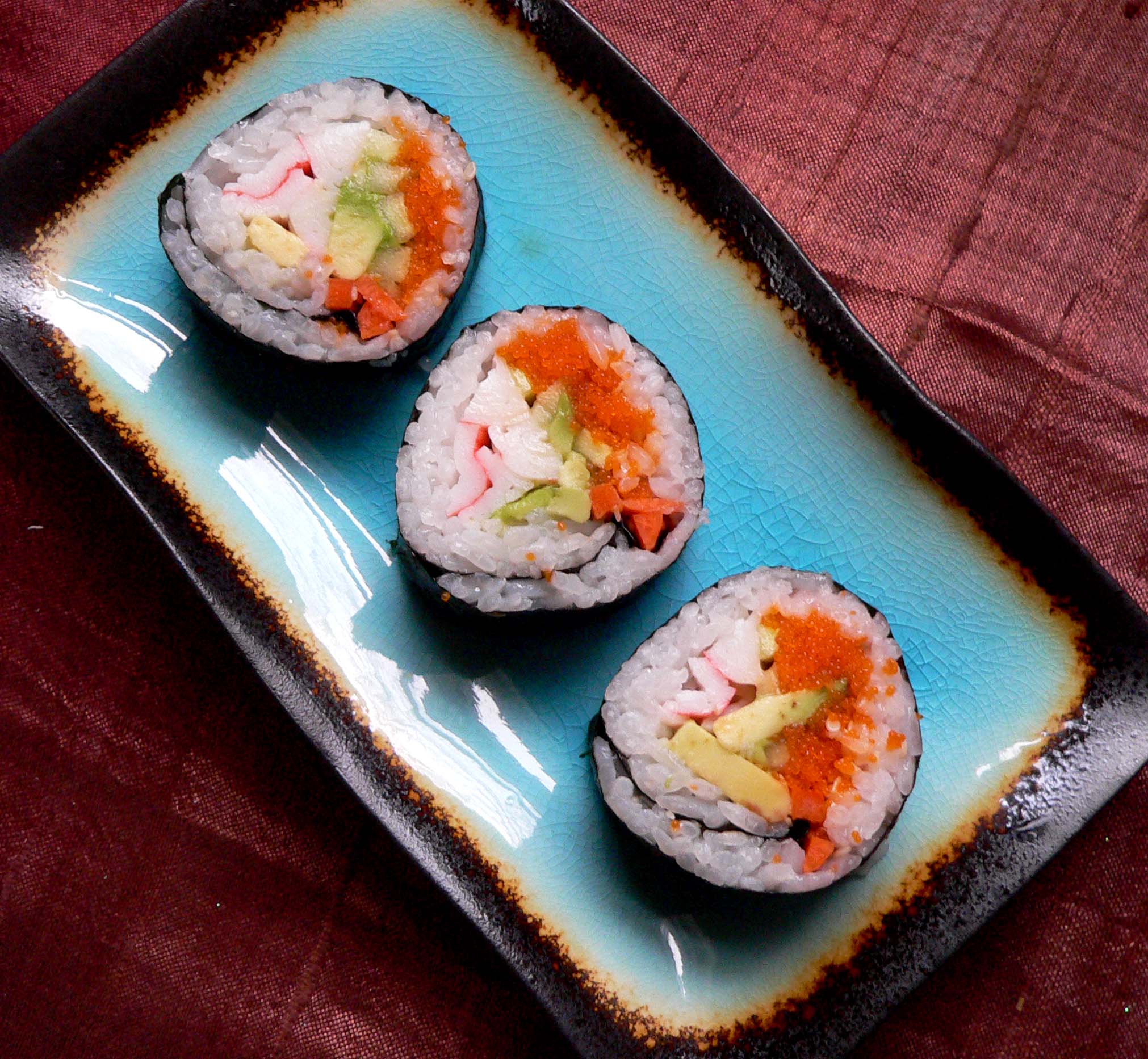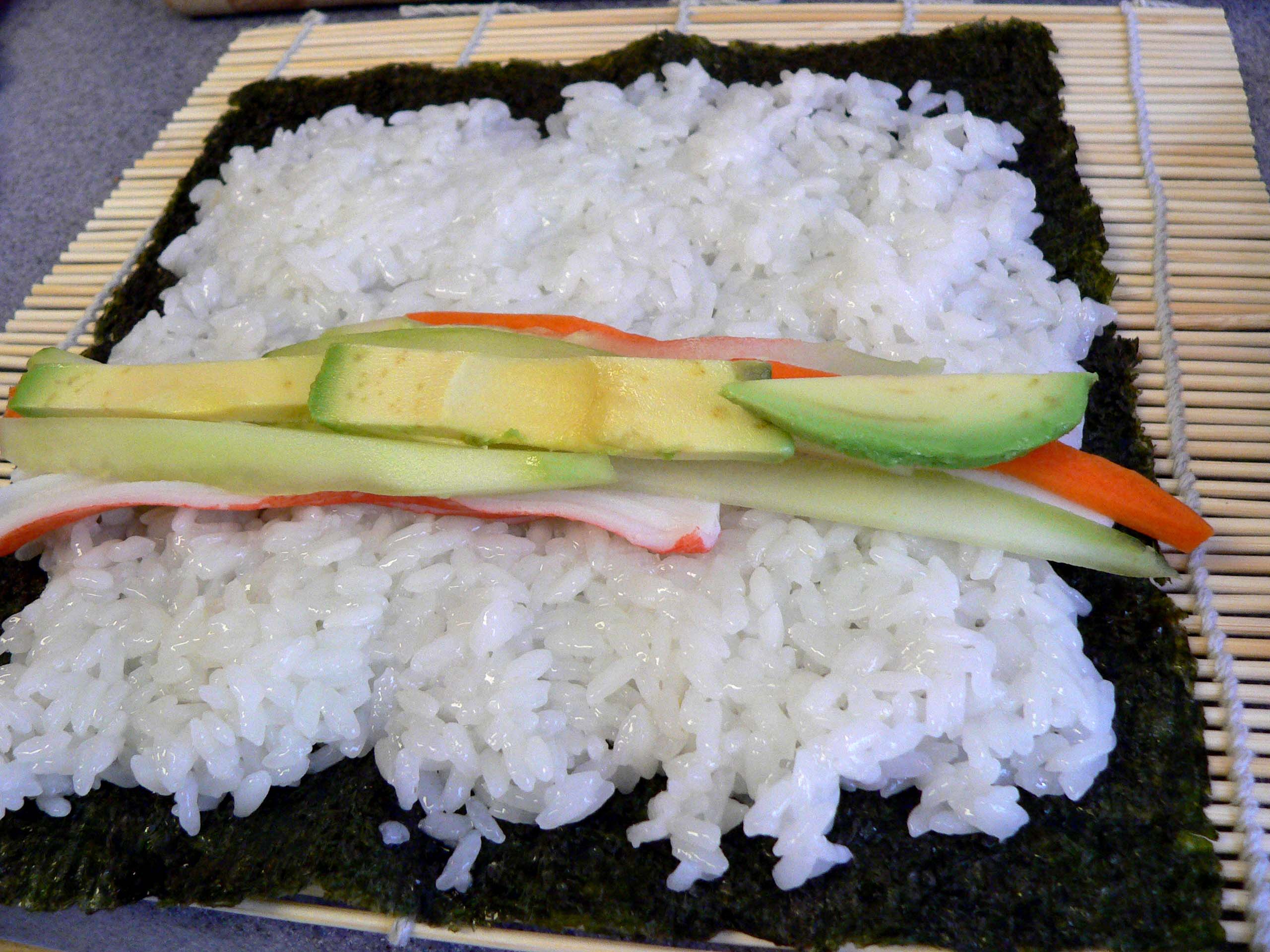 You can use whatever “insides” you’d like for your sushi roll. I used: