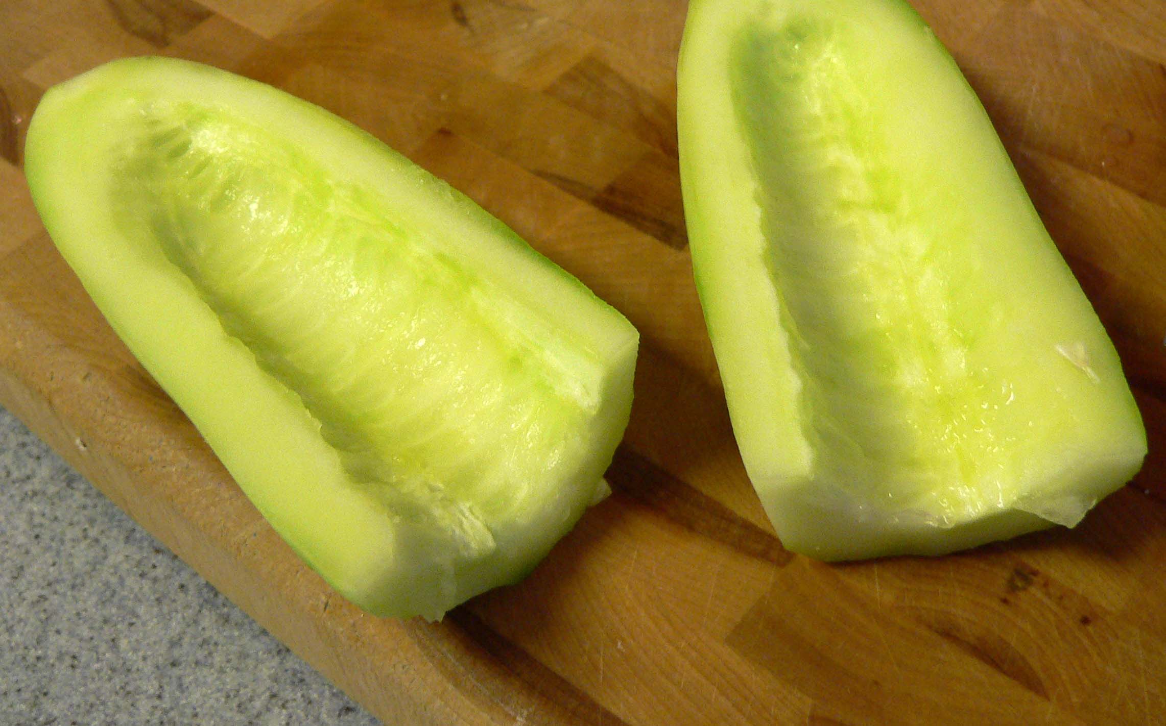 Peel and de-seed one cucumber, slice into long thin strips. Peel one carrot and slice into long thin strips. Halve the avocado and remove the pit. Use a large metal spoon to scoop out 1/2 of the avocado and slice into thin pieces. Slice the crab meat into long thin pieces.