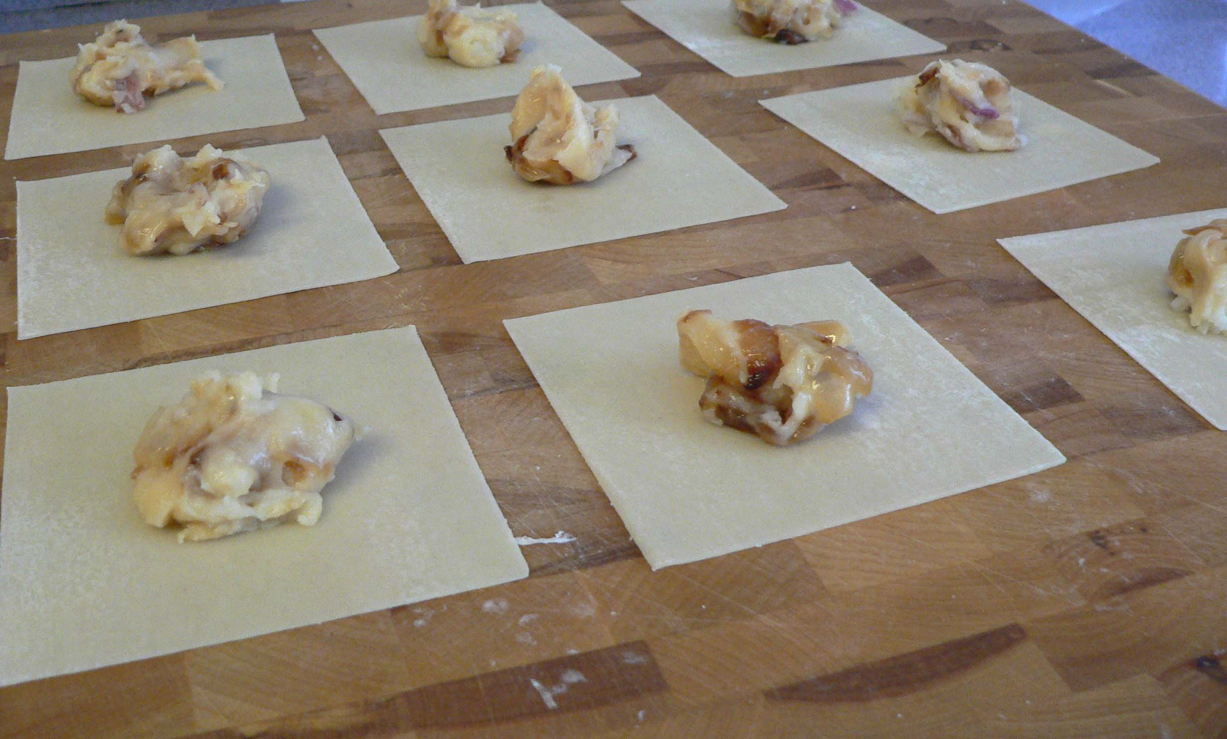 Yes, it was rather ambitious to think that I could make five kinds of dumplings in one day. The process of filling each wonton wrapper is somewhat time consuming, not to mention exhausting. Because I have never done it before, it required a great deal of concentration. I was wiped when I was done. But, that did not stop me from making the final two varieties on Sunday. And it appears we saved the best for last. Both of these recipes are packed with flavor- from the comfort of the cheesy mashed potato filling to the subtly sweet flavor of the coconut, Jon and I were in dumpling heaven.