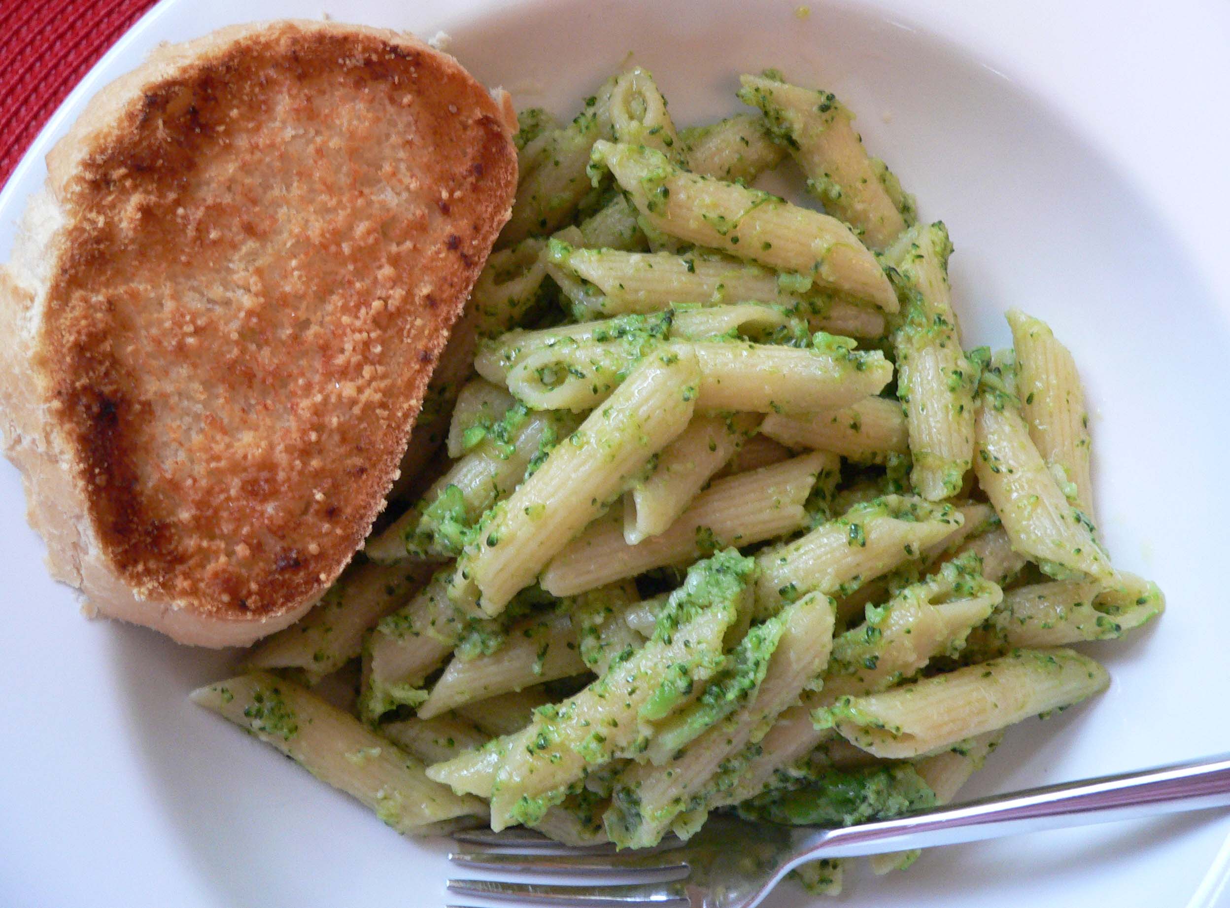 When the water comes to a boil, add the broccoli and wait until the water returns to a boil. Add the pasta and set the timer to the number of minutes recommended on the box. When the timer rings, drain the penne and broccoli in the colander, then dump them into a large serving bowl. Add the olive oil and mix well with a wooden spoon so that the pasta is coated and the bits of broccoli are well distributed throughout. Add the cheese and stir well until you have a nice, green-speckled sauce. Sprinkle with a little extra cheese, and add some pepper.