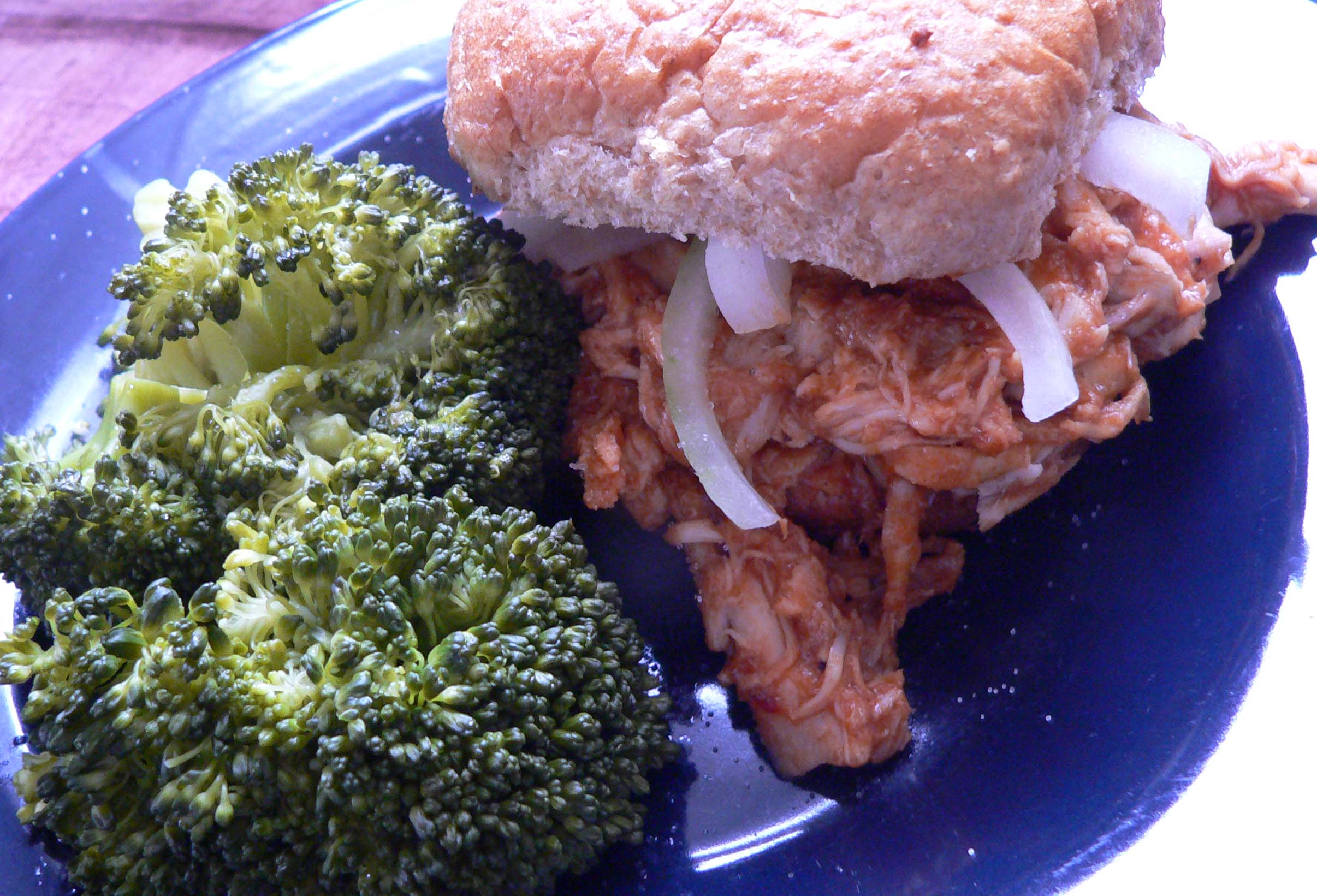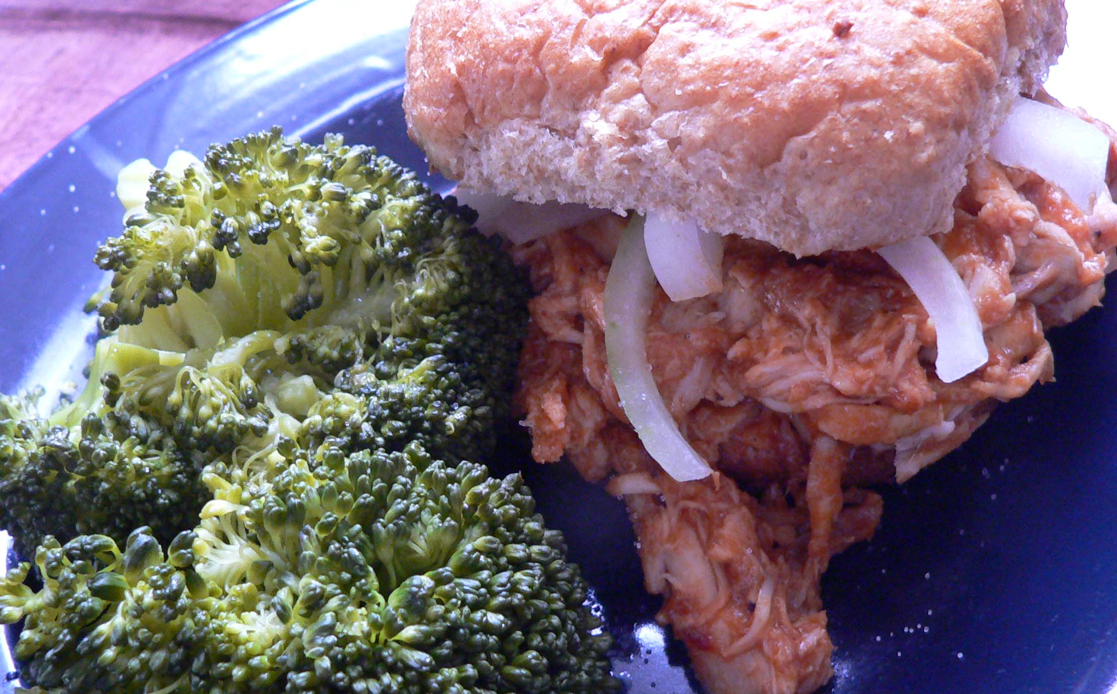 Not sure what to cook for dinner? We don’t always have time to prepare gourmet meals. We try really hard to eat well every day, but let’s face it, sometimes we are tired and want something easy. I will make this simple. Pick up a rotisserie chicken from the grocery store, along with some buns, BBQ sauce, an onion and broccoli.