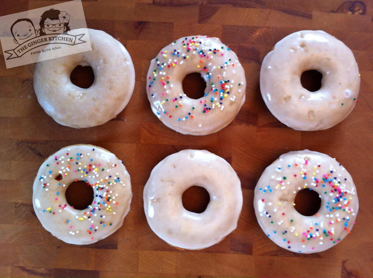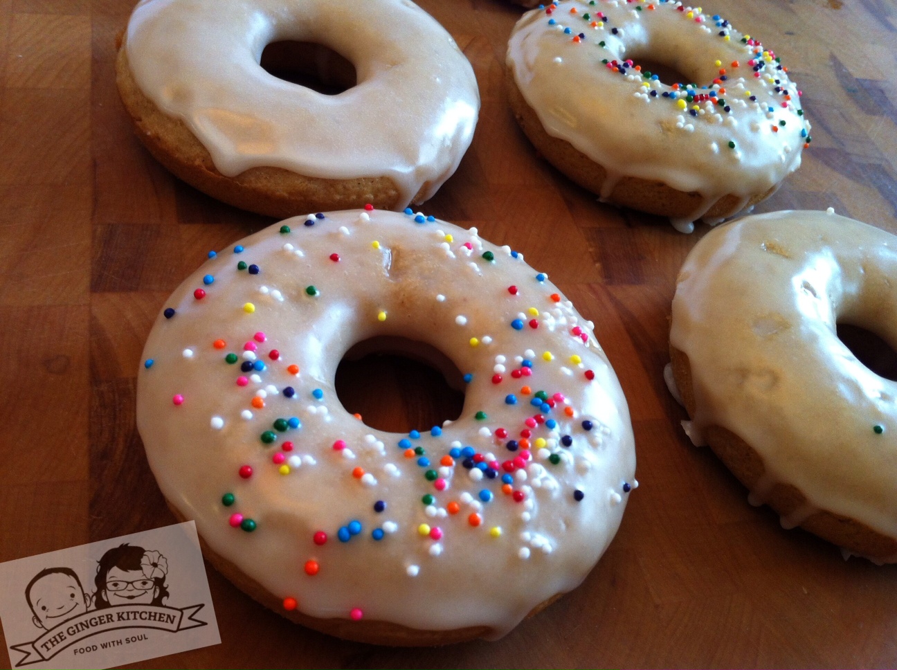 Once the donuts are cool, dip each one into the glaze and place on parchment paper to dry. Sprinkle with desired topping and enjoy!