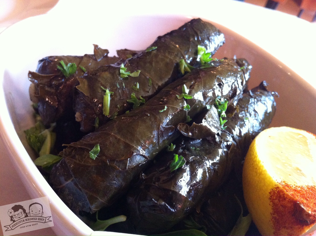 Next up, we tried Warak Dawali, hand-rolled grape leaves with beef and spices, served with house-made greek yogurt. YUM! I love Dawali, but I have never had it like this. Usually it’s a tad oily, or at least the ones I’ve had are, but these were light, fresh, tangy, and simply delicious, and hand rolled by the owner’s mother that day. Talk about fresh.