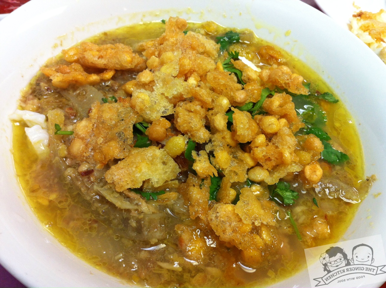Jon’s dad opted for a two dishes: Rice Noodle and Fried Noodle. Fried Noodle is stir fried noodles with seafood and served Burmese Style (which means SPICY!). We were floored with the amount and variety of seafood included with this dish; shrimp, oysters, and calamari to name a few. It also contained bok choy, red peppers and water chestnuts. It came with a small bowl of broth and a spicy salad. Yummy. I am ordering this the next time we go back. The Rice Noodle is one of the traditional Burmese dishes on the menu and is served in a large bowl in broth. It contains rice noodles, cabbage, fried beans and spices. I had only a bite of this dish, but I can’t wait to go back and order it for myself. It’s like a traditional Thai Soup I’ve had at other places, but with spices I couldn’t identify. A bit sweet, a little salty, but definitely tasty.
