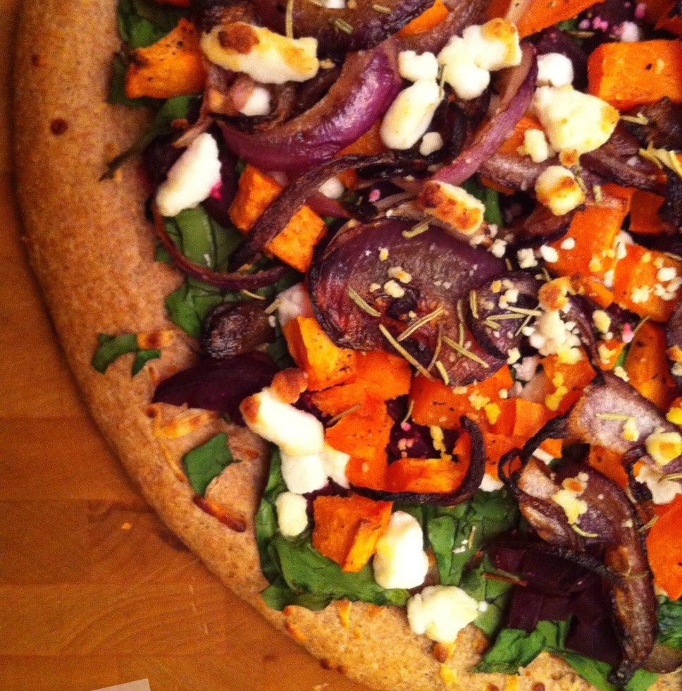 Baked Potato, Beet, Spinach and Goat Cheese Pizza