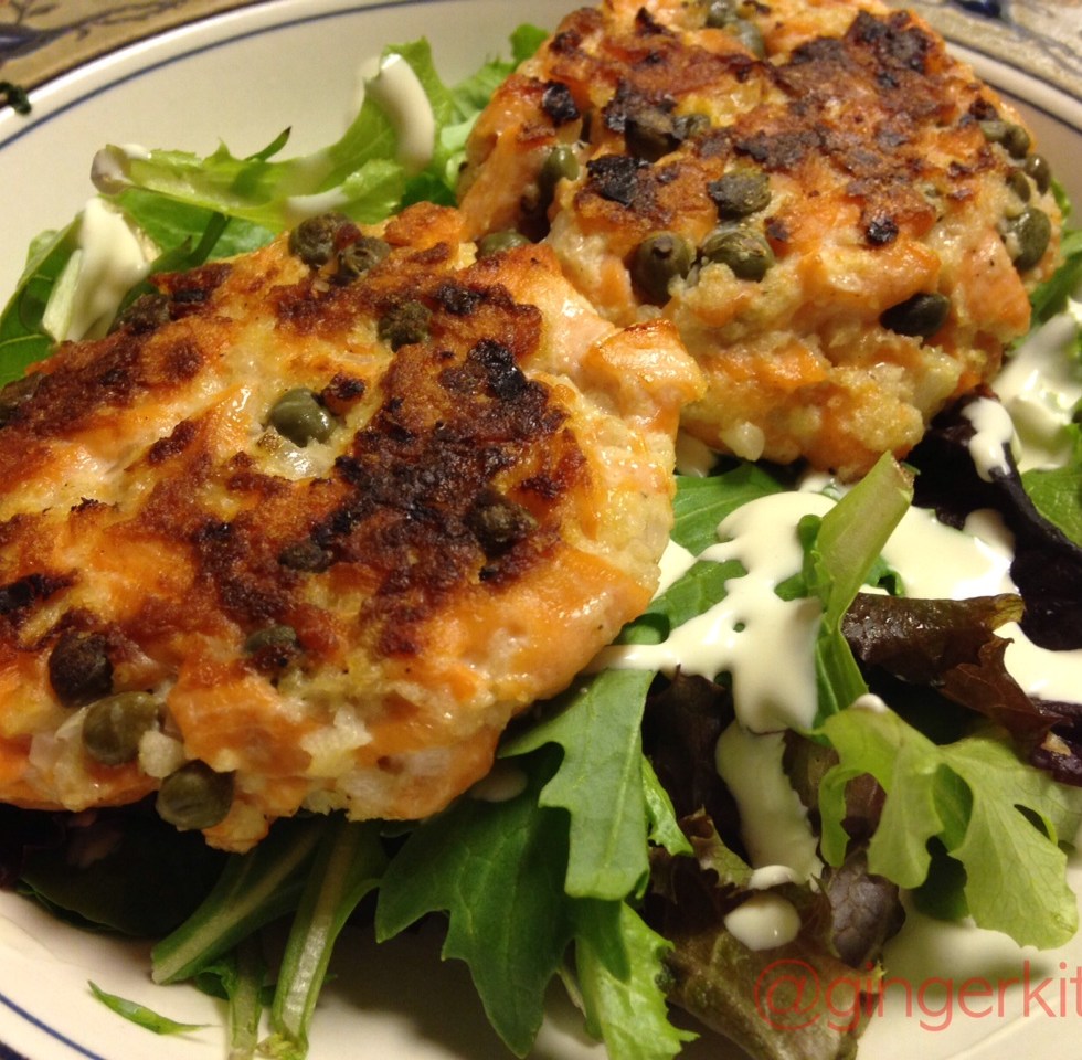 Salmon Cakes with Spring Greens