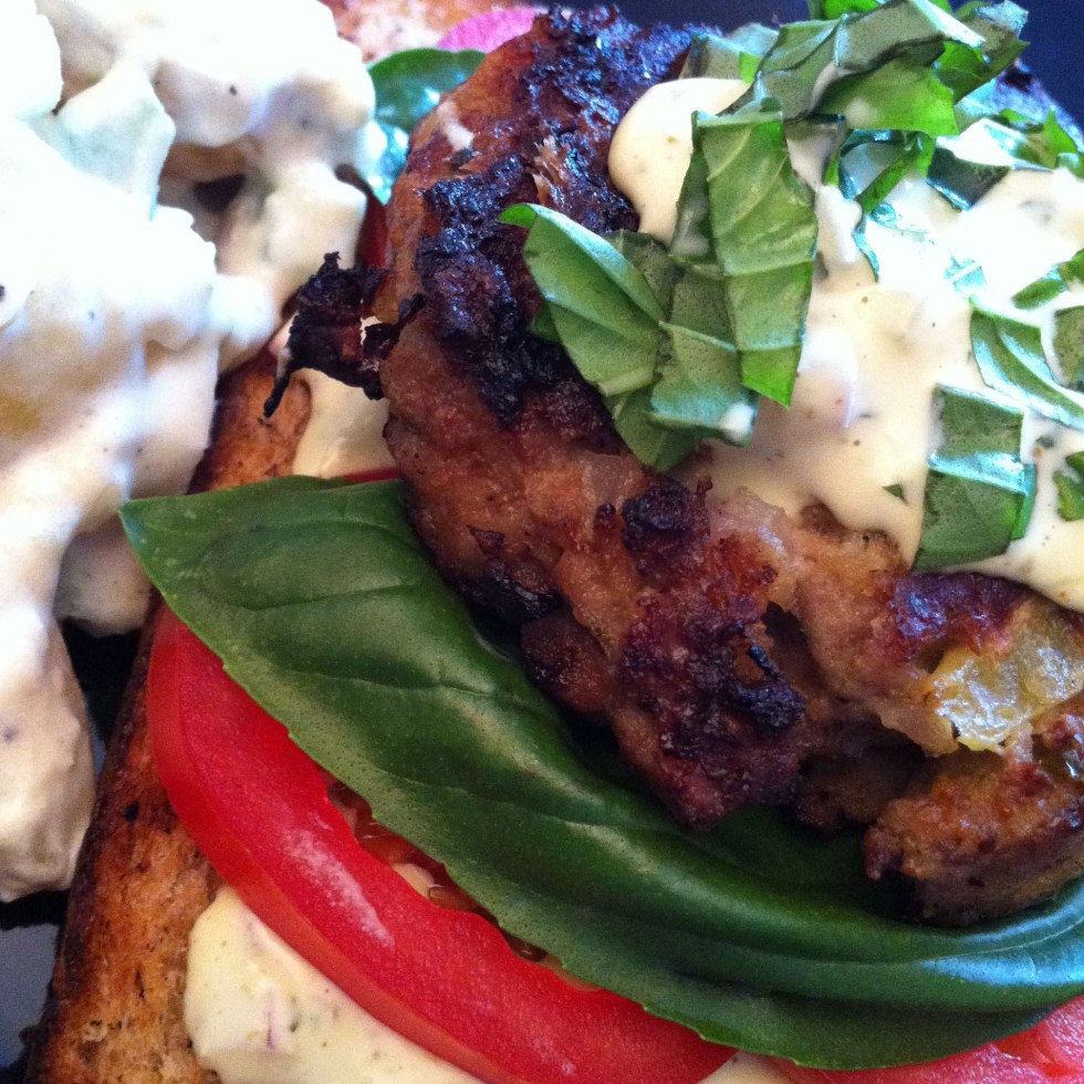 Open Faced Turkey Burgers with Basil Mayonnaise